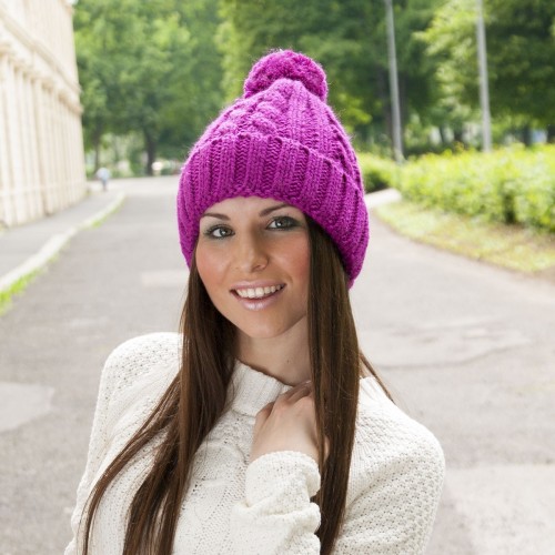 Pletená ohrnovací čepice s bambulí