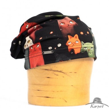 Dámská spadnutá čepice z úpletu s potiskem koček.