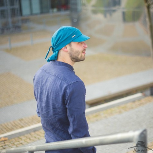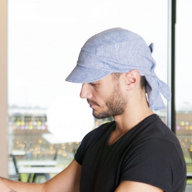 Unisex lněný šátek na zavazování s kšiltem . Vhodný na léto k moři . Český výrobek !!!