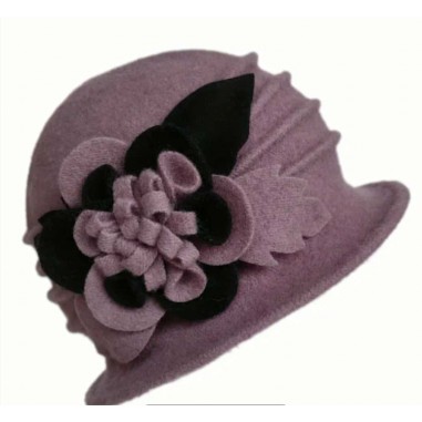 Dámský klobouk z vlněného materiálu zdobený květem. Velice příjemný a dobře nositelný materiál, který je měkký a dobře se přizpůsobí tvaru hlavy.
