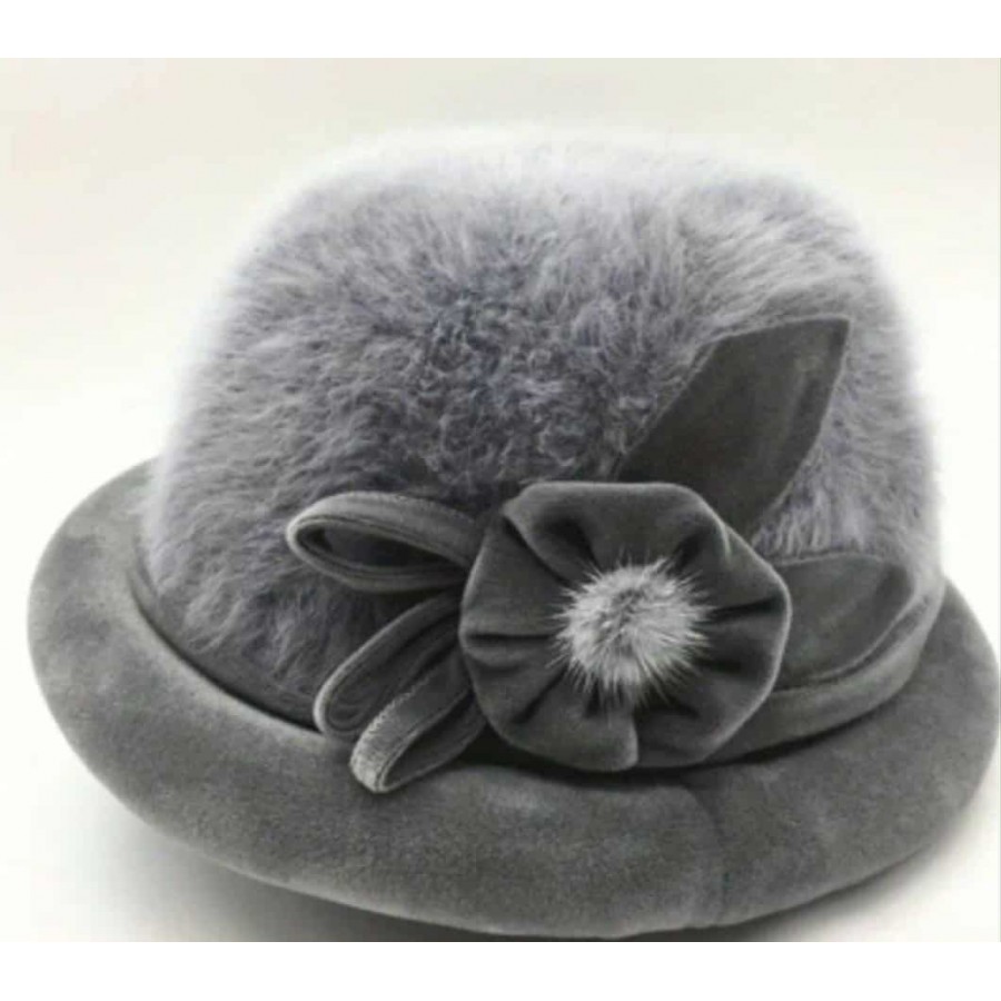 Dámský klobouk z vlněného materiálu zdobený květem. Velice příjemný a dobře nositelný materiál, který je měkký a dobře se přizpůsobí tvaru hlavy.