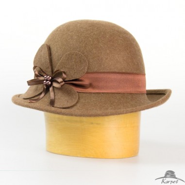 Dámský vlněný klobouk zdobený květem a korálky