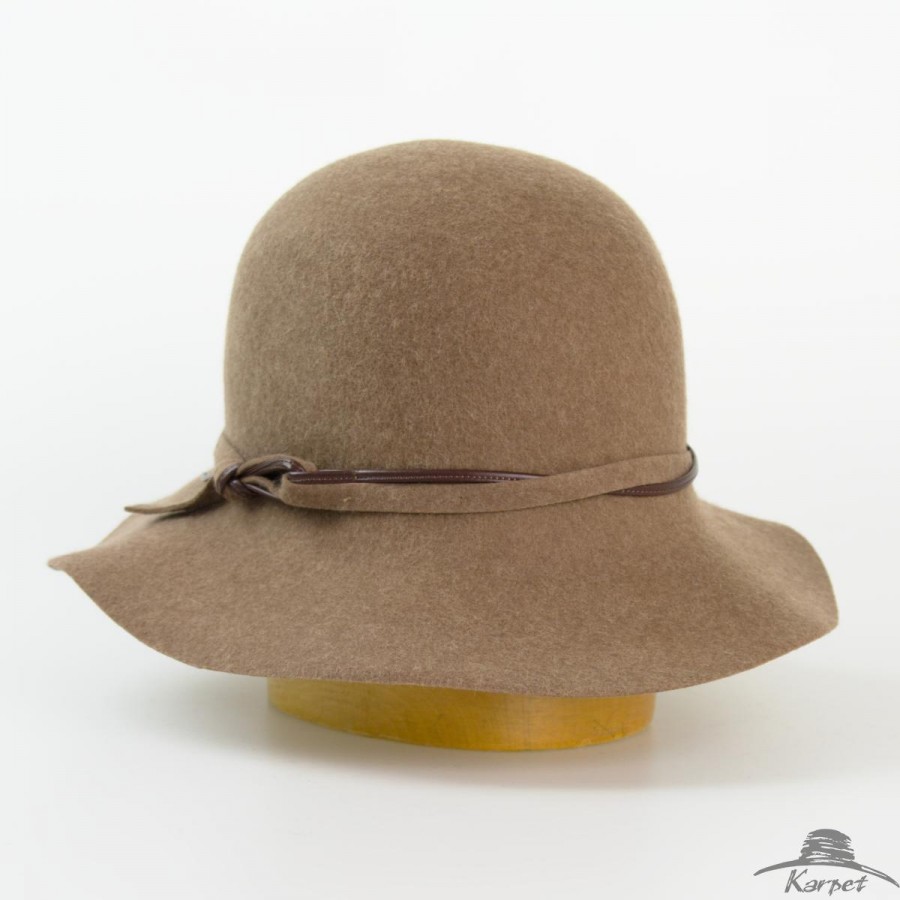 Dámský vlněný klobouk střední krempa zdobený páskem