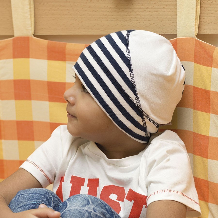 Úpletová čepice kombinovaná s pruhem