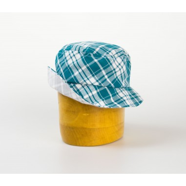 Dětský bavlněný klobouk s rovnou hlavou, káro. Český výrobek !!!
