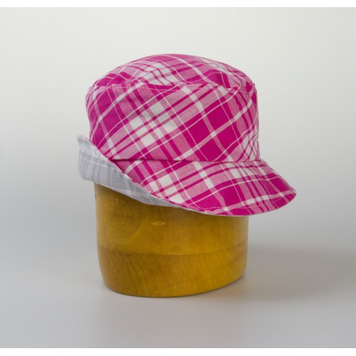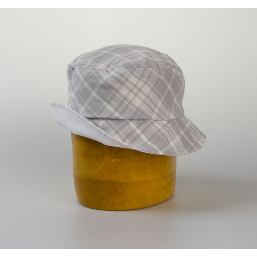 Dětský bavlněný klobouk s rovnou hlavou, káro. Český výrobek !!!