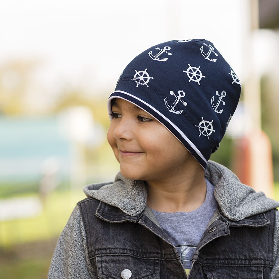 Bavlněná čepice s paspulí a potiskem kotvy. Český výrobek !!!