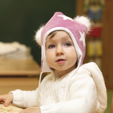Dětská fleece čepice podšitá úpletem s bambulemi