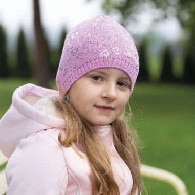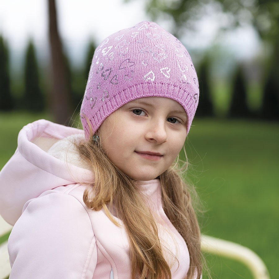 Dívčí pletená prodloužená čepice s potiskem srdce