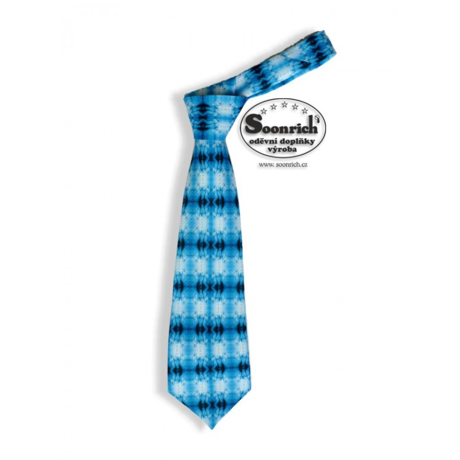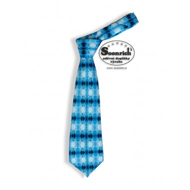 Pánská kravata je ručně potištěná vlastním originálním motivem. Dezén kravaty může být natištěn jak na hladkém nebo tkaném materiálu s geometrickým
