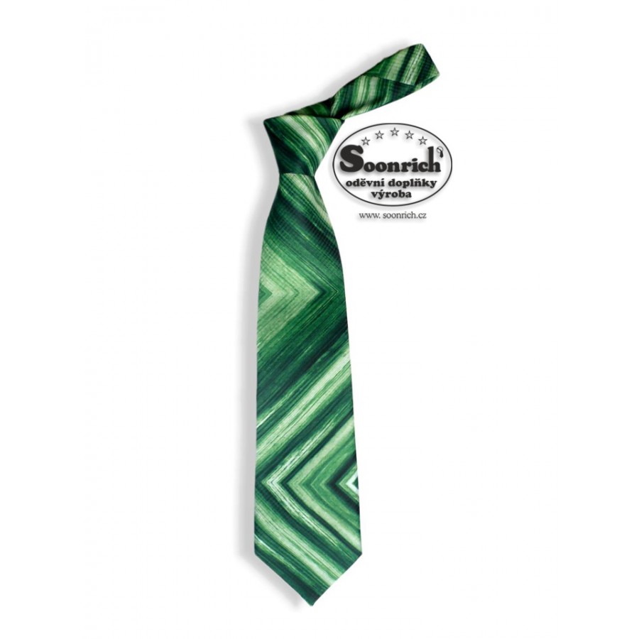 Pánská kravata je ručně potištěná vlastním originálním motivem. Dezén kravaty může být natištěn jak na hladkém nebo tkaném materiálu s geometrickým