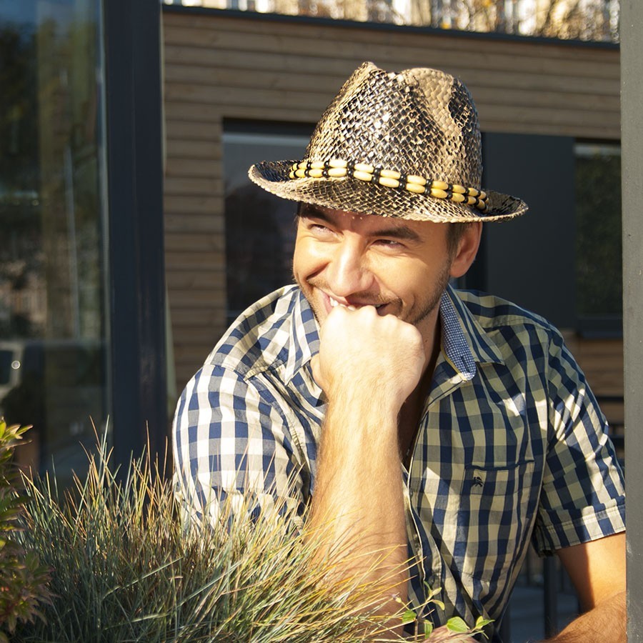 UNISEX slaměný klobouk pánský styl - krokodýl. Vhodný jak pro dámy tak i pro pány.