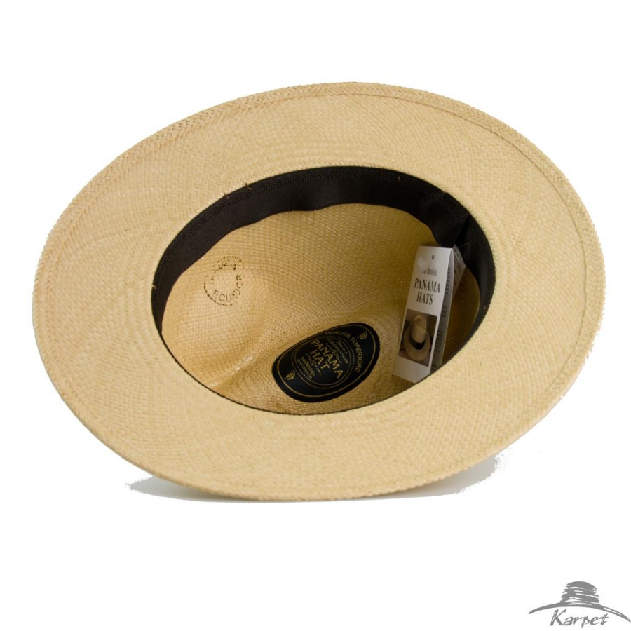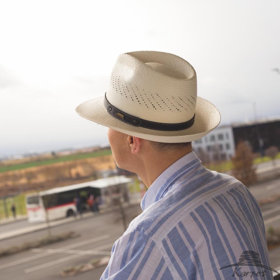 Klobouk z Ekvádorské panamy pro pány i dámy zdobený tmavým koženým páskem - přírodní bělený
